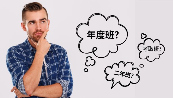 因為準備國家考試的第一年,跟課、預習、複習都會花掉很多時間,因此第一年是每個同學紮穩基礎的重要時期;到了第二年開始,針對國家考試的節奏已經有概念,就要開始將所學消化,練習解題等等。在這樣的學習規劃下,選擇兩年班或考取班,每年提供完整的課程與全新的教材,對於學習是最有幫助的。