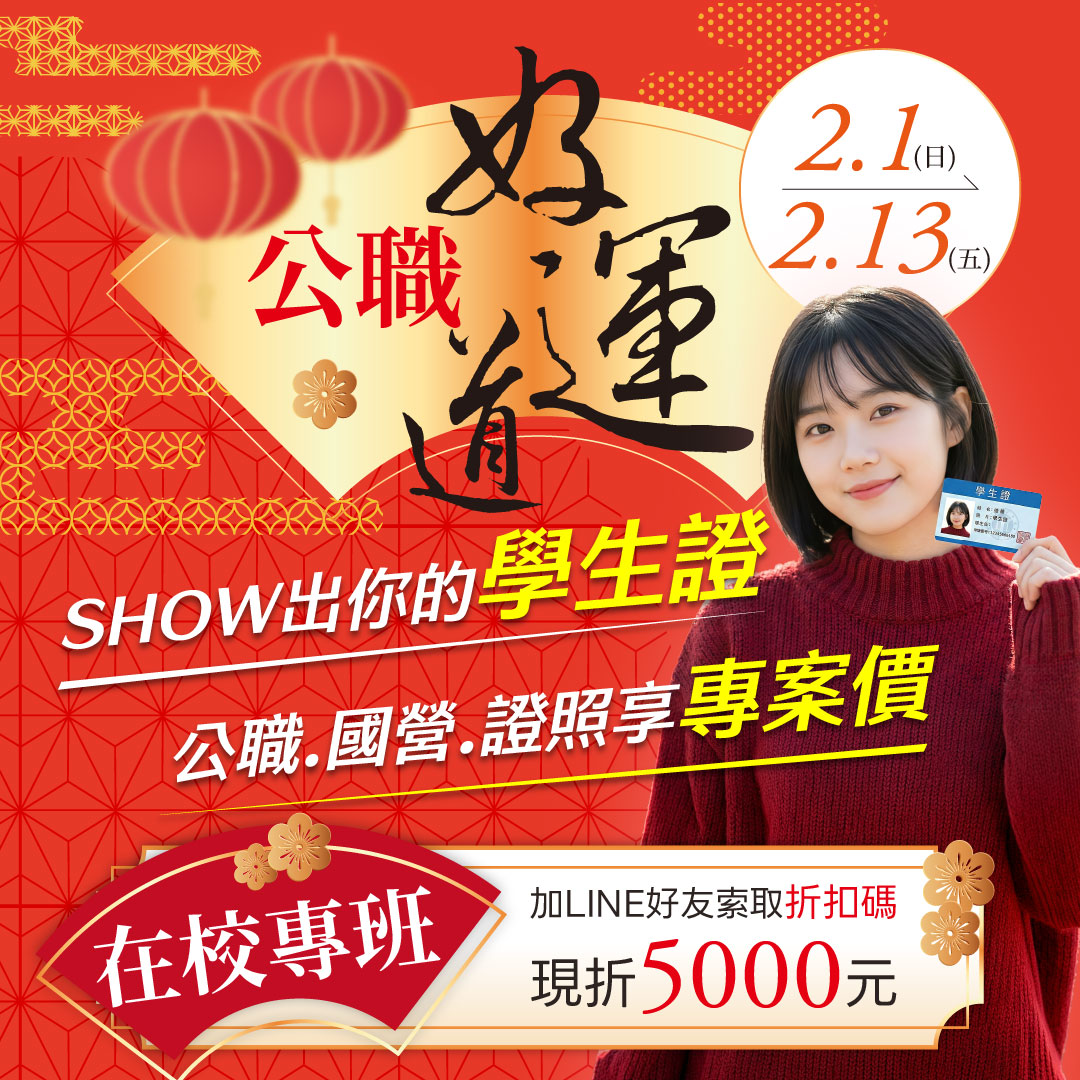 限時優惠|2/7–2/11 現場・線上同步|短期衝刺上榜專班一般警察