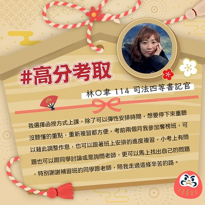 第二年升級函授新年度或面授、視訊考取班加強。