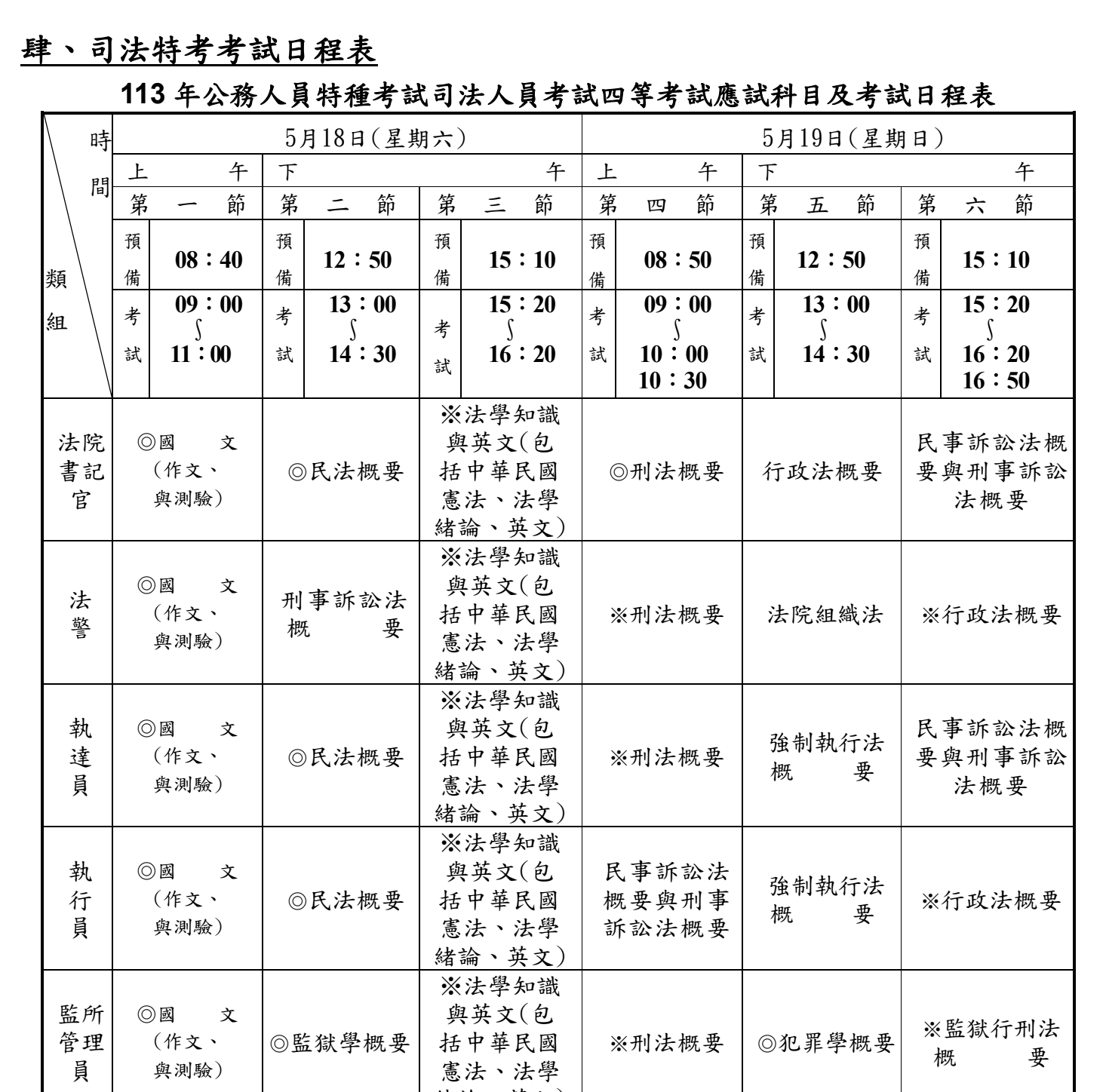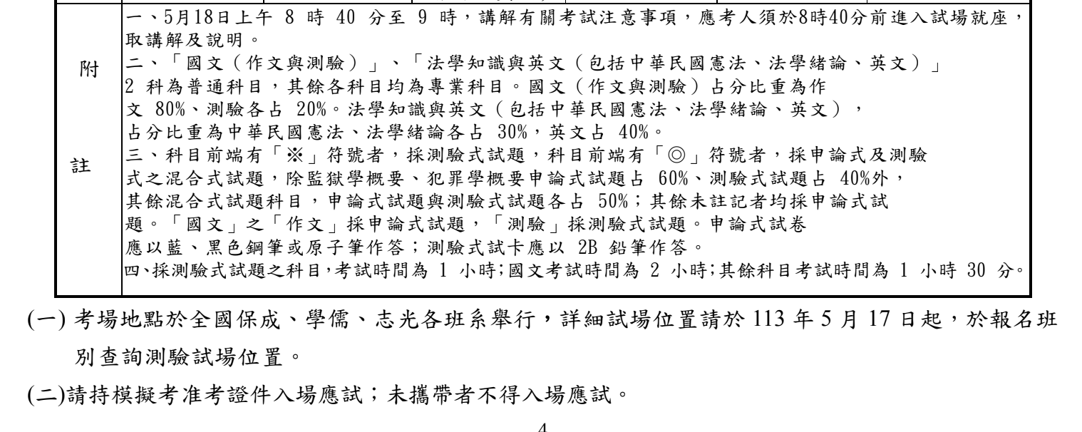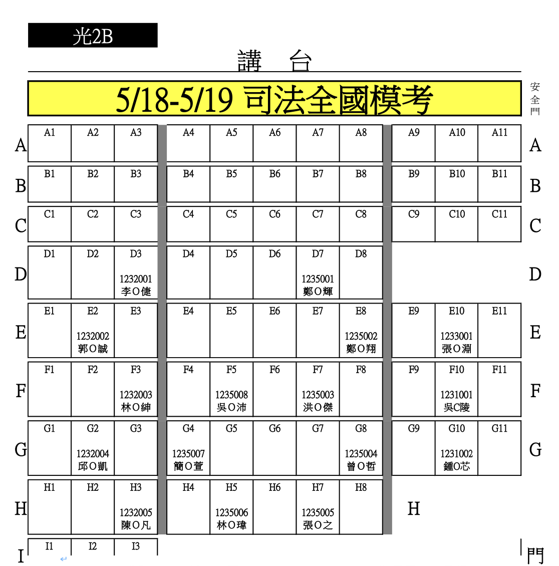 113司法特考四等全國模擬考》座位表公告》5/18-5/19考試