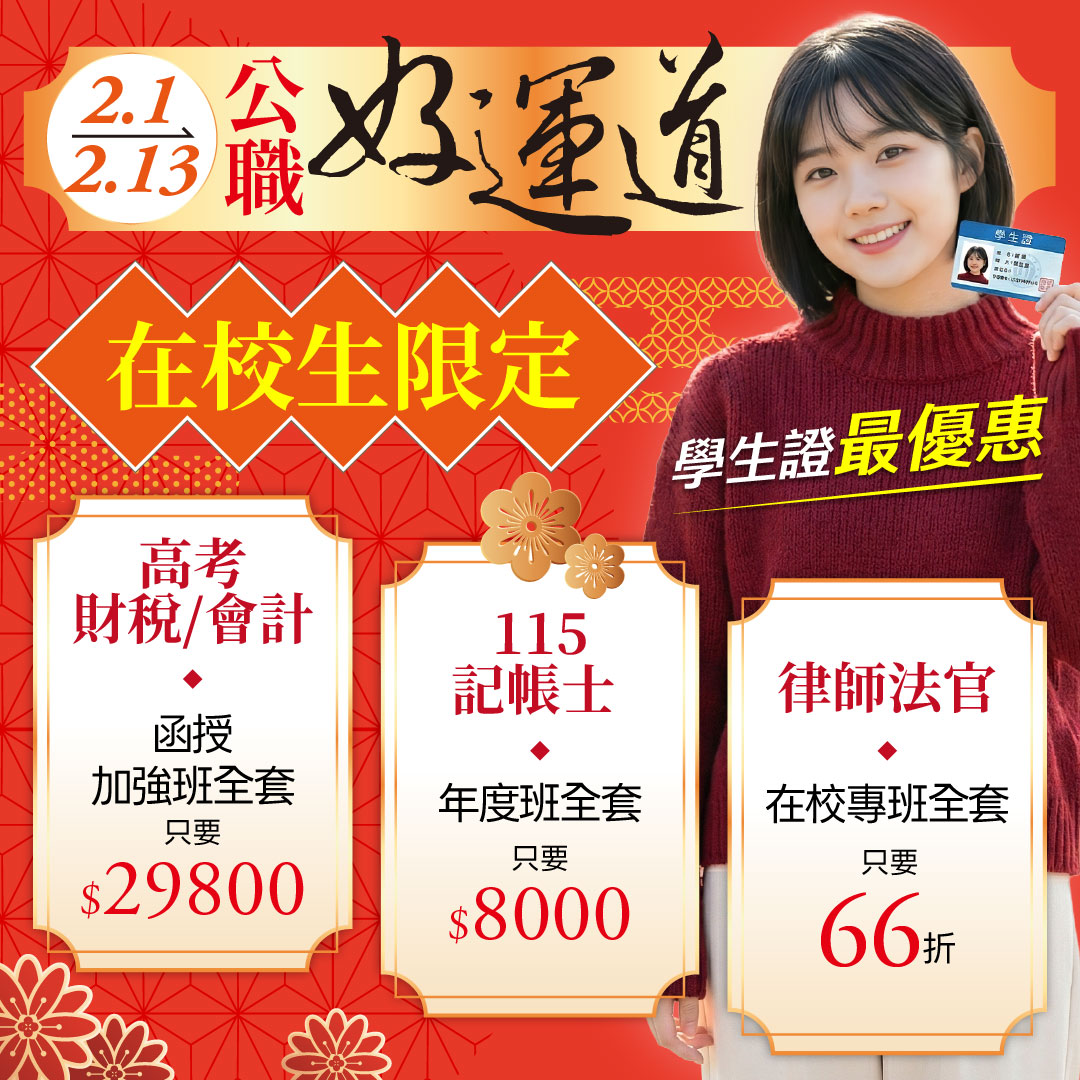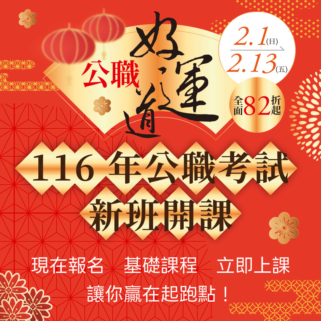 2/1-2/13公職好運道|116新班開課 82 折起