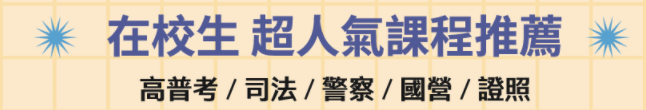 Ex. 大四針對「共同+專業科目」全力衝刺 報名後還可享有畢業後一年的輔考資源, 享有免費補課與轉班服務,不用擔心自己是在外地念書! |
