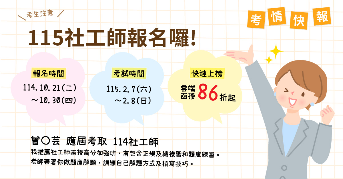 專技高考【社工師】115新班|全面開課(115第一次社工師報名-10/30)