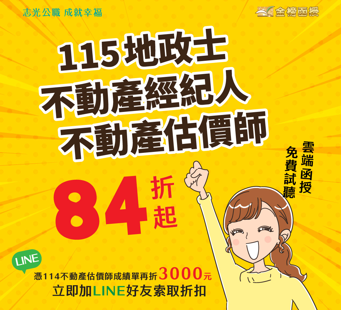 地政士|不動產經紀人|不動產估價師【新班開課】84折起!!