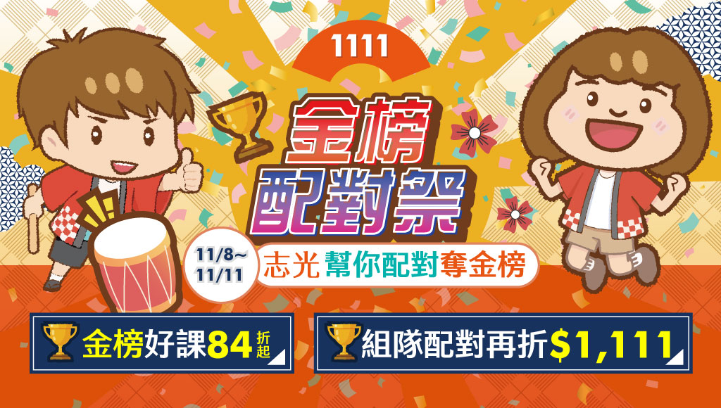 11/8~11/11【金榜配對祭】全面84折起,組隊再折1111元!