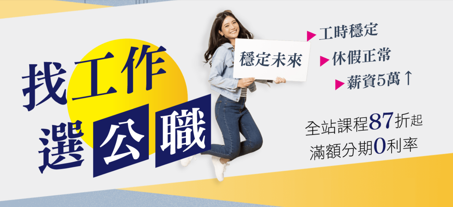 10/1~31 | 一般警察.國營事業 | 1.全套87折、本系列舊生/學生證84折;單科85折。 |