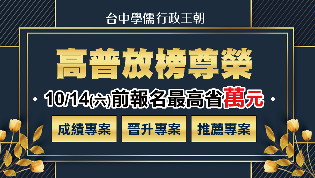 高普放榜尊榮【10/14前報名最優惠】舊生再折3千,新生報名享考取生推薦專案價