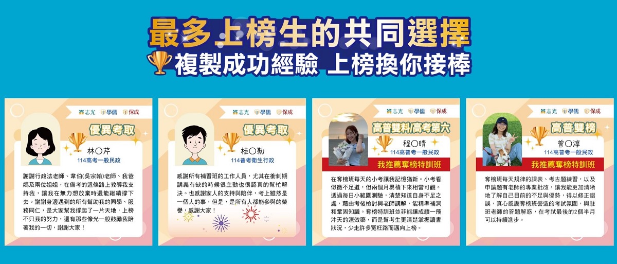 高普考王牌師資 強效輔導 讓您快速上榜!