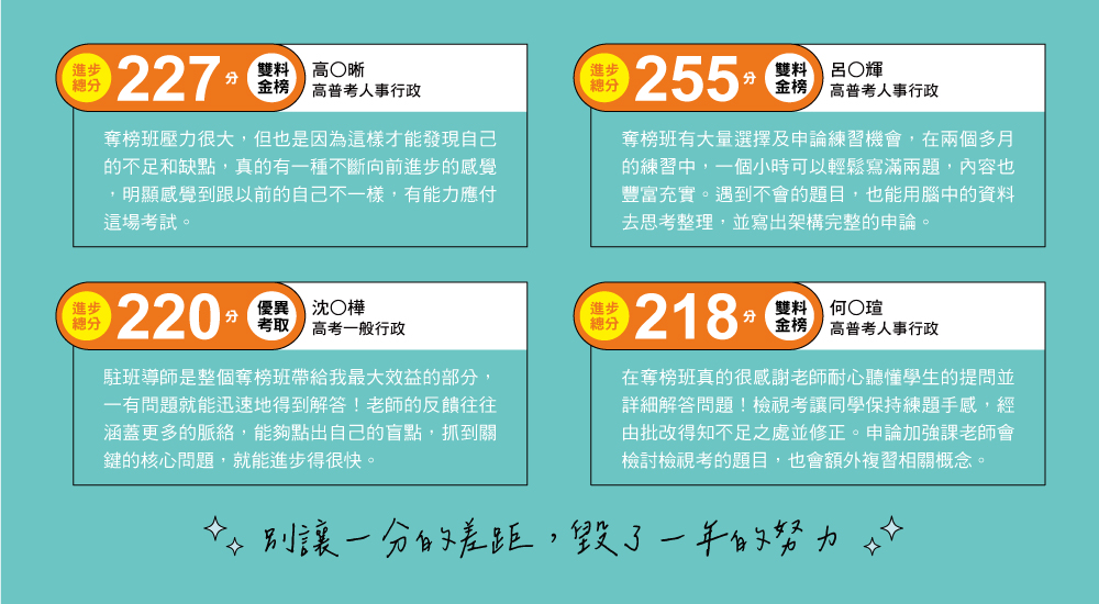 【別讓一分的差距 毀了一年的努力】高普考奪榜特訓班,上榜率最高、訓練最紮實的課程,3/16說明會,3/16~3/23熱烈招生│完整說明課程規劃、收費與訓練計劃