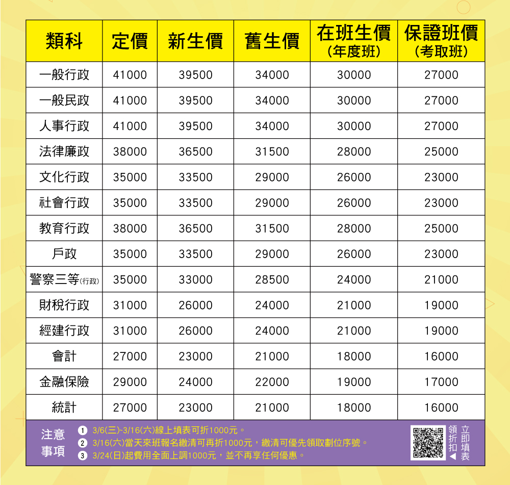 凡參加線上填表,即可於3/16-3/23報名期間享1000元課程優惠