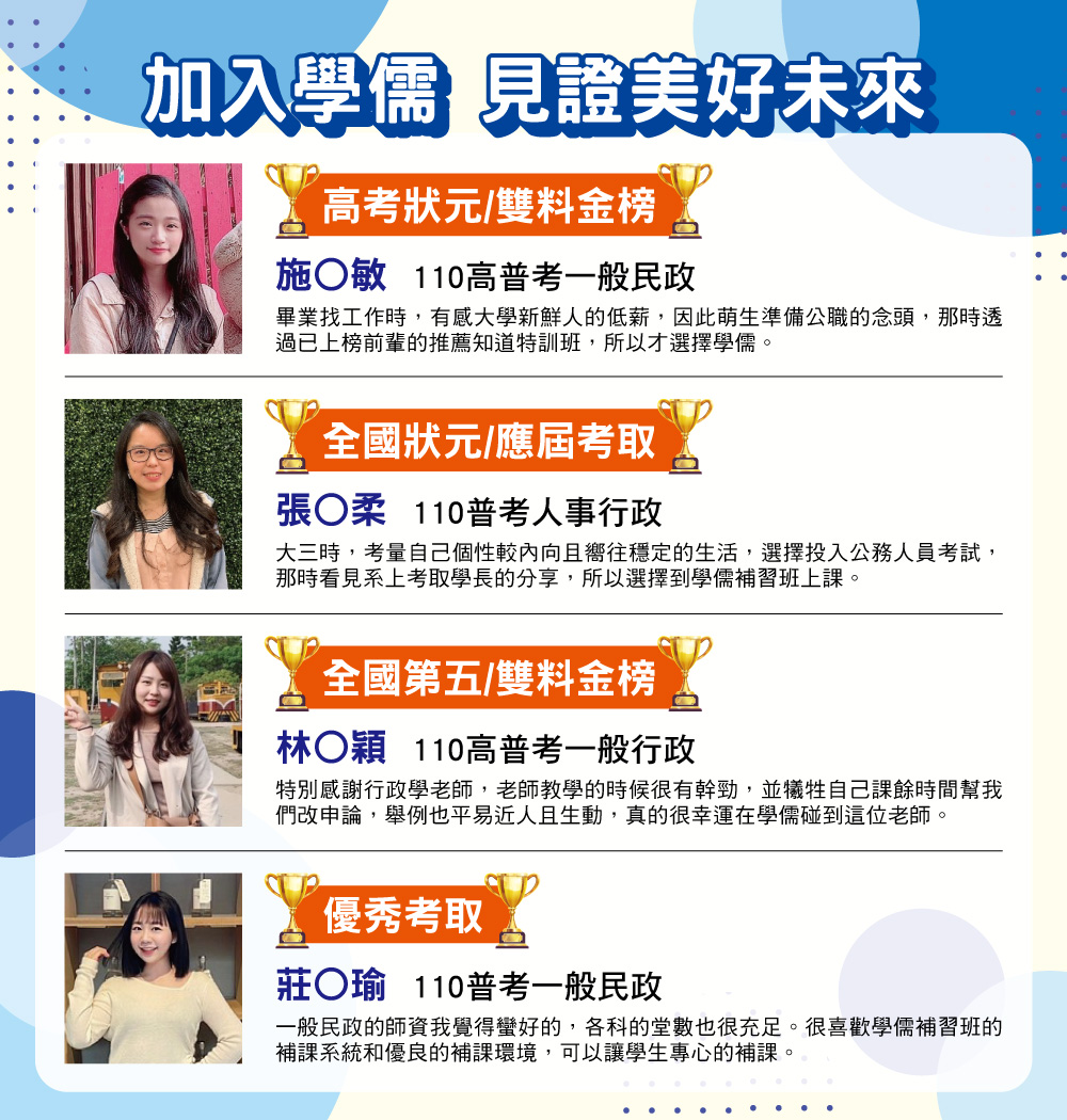 110年高普考榜單 學儒保成勝試贏家榮耀榜單